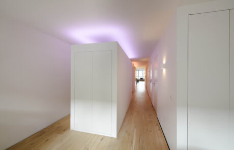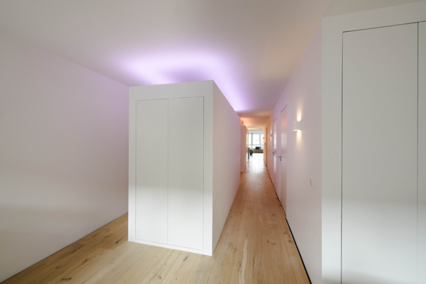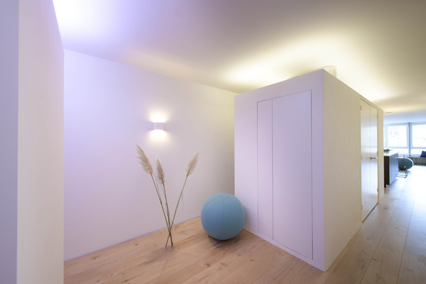 Alles uitgelicht dor materiaal van Delta Light. Mix van direct licht en indirect licht als ook een spel van lichtlijnen.