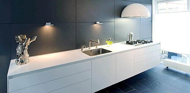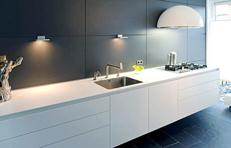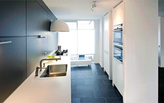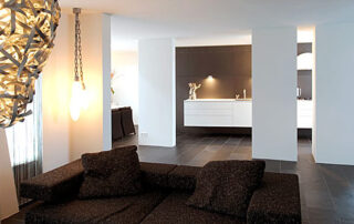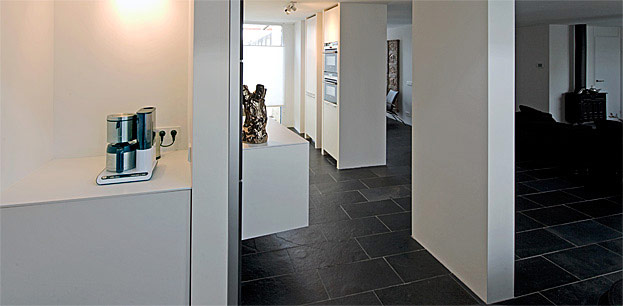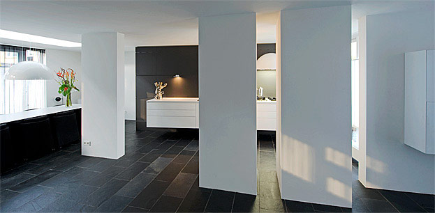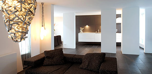 Dinessen heeft de vloer mogen leveren, keuken en een aantal andere meubelen komen uit de stal van bulthaup. De badkamer is vervaardigd met composiet van Silestone welke geplaatst is door de Arte groep. Diverse armaturen van Delta light zijn gebruikt om alles uit te lichten.