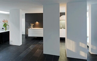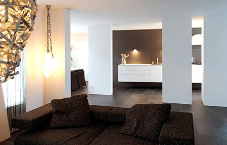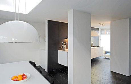 Minimalistisch, puur en geheel volgens de basis van Karin Lauwers Concepten. Zichtlijnen, lichtlijnen en ruimtelijke indeling zijn leidend geweest voor het gehele project.
