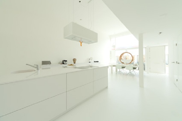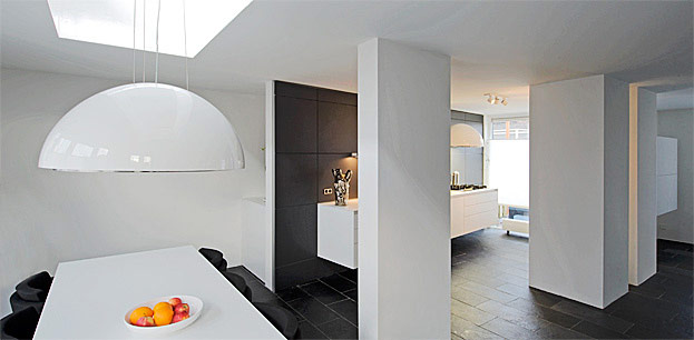 De woning ontworpen door een Belgische architect, gebouwd door een Nederlands aannemer en afgewerkt door Karin Lauwers.